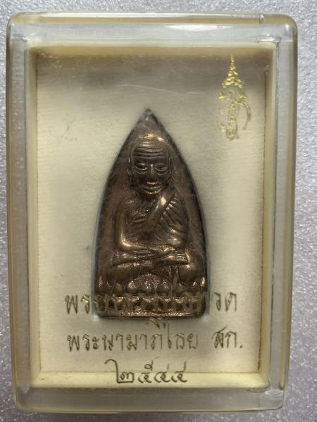 หลวงปู่ทวด รุ่นพระนามาภิไธย สก. วัดห้วยมงคล ปี 2544 เนื้อนวะโลหะ จัดสร้างเพื่อหารายได้สมทบทุนสร้างหลวงปู่ทวดองค์ใหญ่ พิมพ์บัวรอบยอดนิยม ได้รับพระราชทานอักษร สก. ประดิษฐานหลังองค์พระ ปลุกเสกใหญ่ 3 วาระ