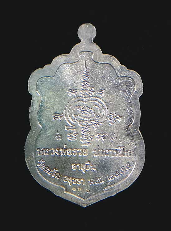 เหรียญเสมา "อายุยืน รวยสมปรารถนา" หลวงพ่อรวย ปาสาทิโก วัดตะโก จ.พระนครศรีอยุธยา ปี ๒๕๕๕ เป็นวัตถุมงคลรุ่นยอดนิยมที่สร้างขึ้นเพื่อวัตถุประสงค์ในการปฏิสังขรณ์วัดป่าไม้น้อย จ.อุดรธานี และบูรณะสถานีรถไฟชุมทางบ้านภาชี ปี ๒๕๕๕ เนื้อเงิน จำนวนสร้าง ๑,๙๙๙ เหรียญ เหรียญนี้หมายเลข ๑๐๖ พร้อมกล่องเดิม