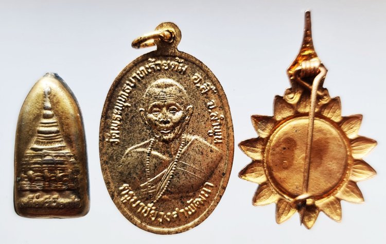 << วัดใจ >> พระรอดบรรจุกริ่ง พิมพ์รูปเหมือน หลังเจดีย์ศรีเวียงชัย + เหรียญครูบาเจ้าศรีวิชัย หลังครูบาวงศ์ + เข็มกลัด ครูบาชัยวงศาพัฒนา วัดพระพุทธบาทห้วยต้ม จ.ลำพูน