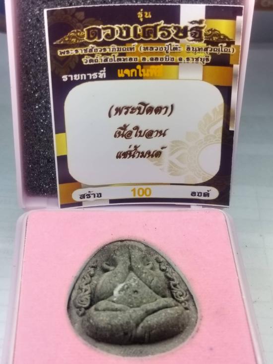 พระปิดตา รุ่น ดวงเศรษฐี แจกในพิธี เนื้อ ใบลานแช่น้ำมนต์ สร้าง 100 องค์ หมายเลข 71 หลวงปู่โต๊ะ วัดถ้ำสิงโตทอง ราชบุรี มวลสารและพิธีดีมาก มีกล่องเดิมจากวัด