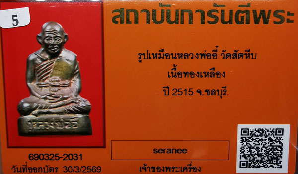 รูปเหมือนหลวงพ่ออี๋ วัดสัตหีบ เนื้อทองเหลือง ปี2515 จ.ชลบุรี + บัตรG-pra สภาพเดิมค่ะ |