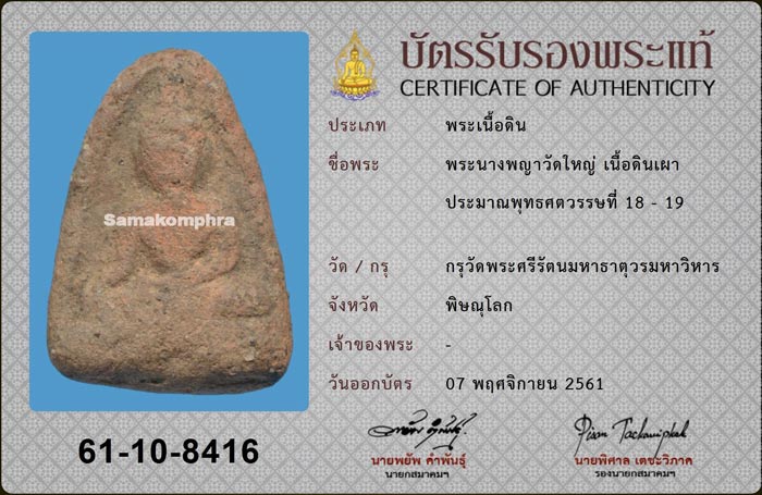 พระนางพญาวัดใหญ่ จ.พิษณุโลก**บัตรสมาคม**