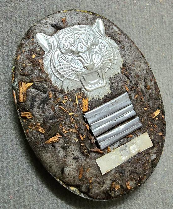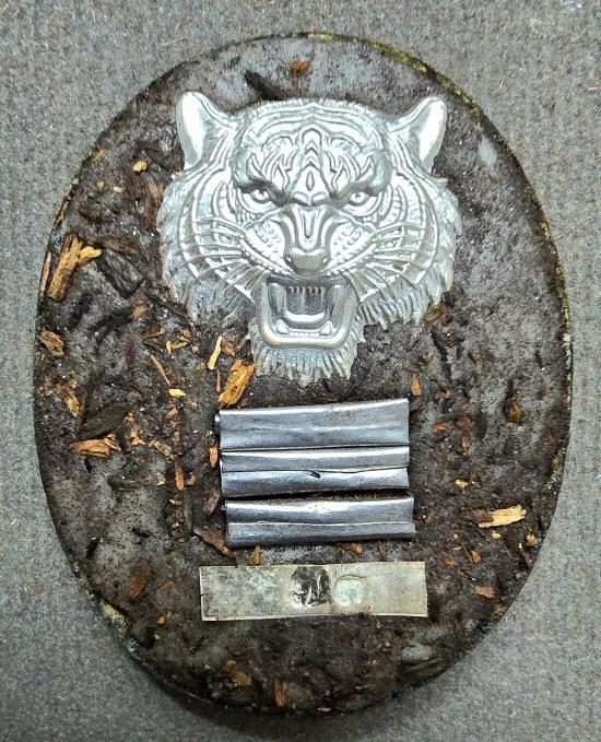 ล็อกเก็ตฉากทอง หลังอุดมวลสาร ฝังหน้ากากเสือเนื้อเงิน ตระกรุดตะกั่ว 3 ดอก สวยมาก
