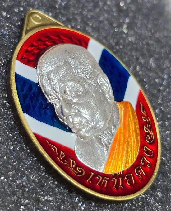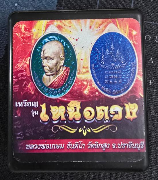 เหรียญ รุ่น "เหนือดวง" หลวงพ่อเกษม ขันติโก วัดจิกสูง ปราจีนบุรี เนื้อทองทิพย์ หน้ากากเงิน ลงยาลายธงชาติแนวเฉียง(อุลตร้าแมน) สวยมาก ตอก"รวย" "พิเศษ" หมายเลข ๒....พร้อมกล่อง |