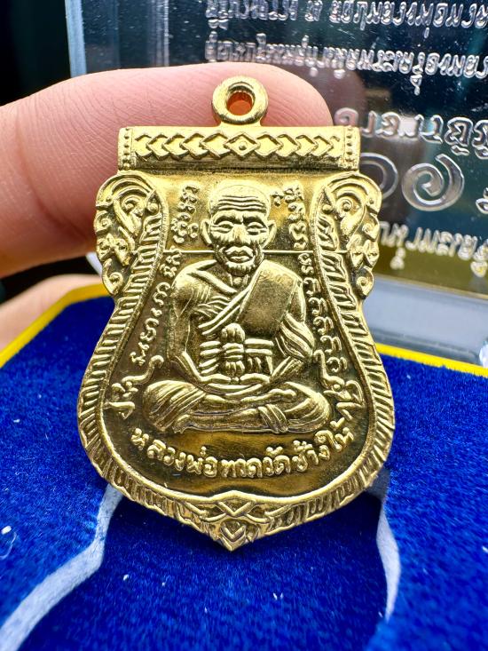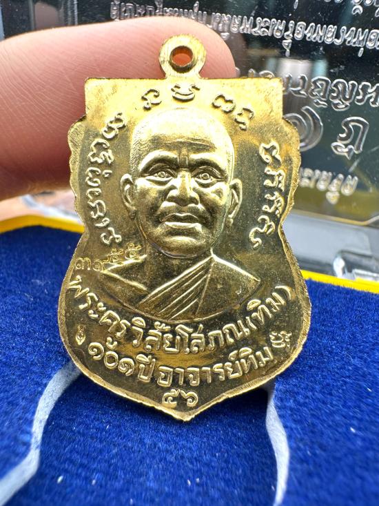 เหรียญเสมาพิมพ์หน้าเลื่อน หลวงปู่ทวด 101 ปีหลัง พระอาจารย์ทิม หลักเมืองปัตตานี เนื้อทองดอกบวบ หมายเลข 3955 กล่องเดิมแท้ วัด
