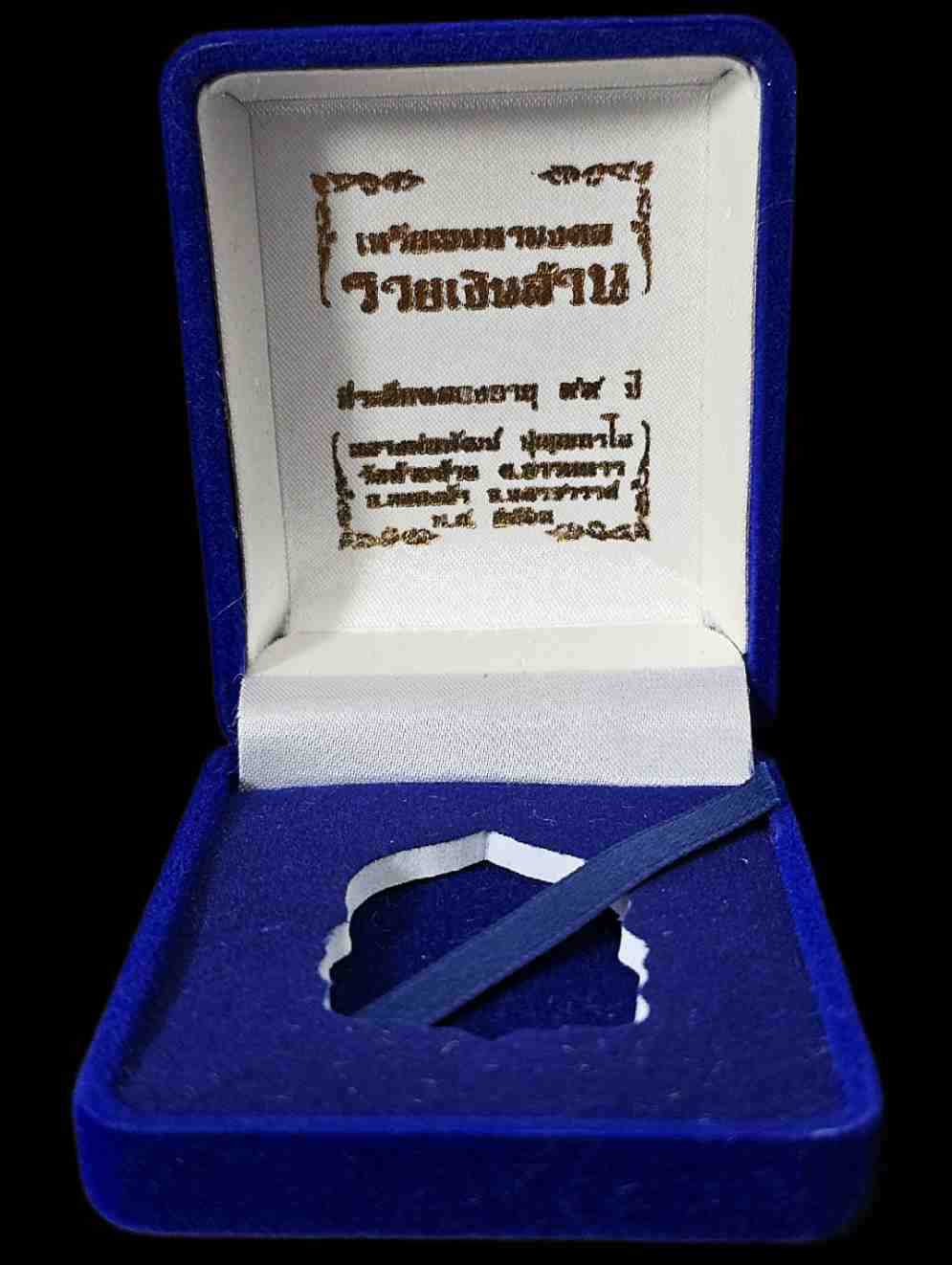 หลวงพ่อพัฒน์ วัดห้วยด้วน ปี 2563 รุ่นมหามงคล รวยเงินล้าน เนื้อเงินหน้ากากทองคำแท้ เลข 897 (เลขมังกรหายากมากๆ) เก็บได้รีบเก็บครับ เหรียญสภาพสวยเดิมๆ พร้อมกล่องเดิม รับประกันพระแท้ตลอดชีพ