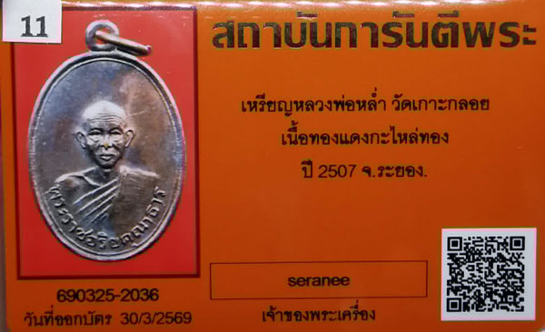 เหรียญหลวงพ่อหล่ำ วัดเกาะลอย เนื้อทองแดงกะไหล่ทอง ห่วงเดิม ปี2507 จ.ระยอง + บัตรG-pra สภาพสวยเดิมค่ะ สภาพตามรูปทุกประการค่ะ