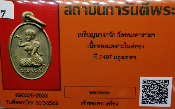 เหรียญนางกวัก วัดอนงคารามฯ เนื้อทองแดงกะไหล่ทอง ห่วงเดิม ปี2497 จ.กรุงเทพฯ + บัตรG-pra สภาพสวยเดิมค่ะ สภาพตามรูปทุกประการค่ะ