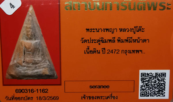 พระนางพญา หลวงปู่โต๊ะ วัดประดู่ฉิมพลี พิมพ์มีหน้าตา เนื้อดิน ปี2472 + บัตรG-pra สภาพเดิมค่ะ สภาพตามรูปทุกประการค่ะ