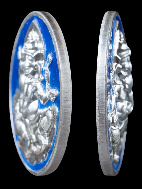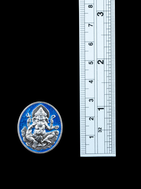เหรียญพระพิฆเนศวร ที่ระลึกในงานไหว้ครู หลวงพ่อวิชา รติยุตฺโต วัดศรีมณีวรรณ จ.ชัยนาท พ.ศ.2558 เนื้อเงินลงยาสีน้ำเงิน ตอก 2 โค๊ต ตอกเลข สภาพสวยกริ๊บพร้อมกล่องเดิม