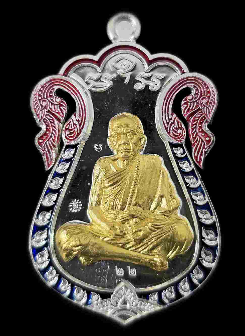 เหรียญเสมาฉลุลงยา2สี เนื้อเงินหน้ากากทองคำแท้ เลข 22 โคตรหายาก เก็บได้รีบเก็บ รุ่นศิษย์ศรัทธาบูชาครู หลวงปู่หมุน ฐีตสีโล พุทธาภิเษก ณ วัดบ้านจานปี61 รับประกันพระแท้ตลอดชีพ