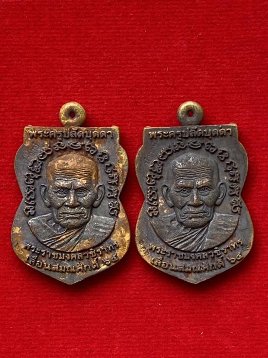 เคาะเดียวแดง เหรียญหล่อ หลวงปู่ทวดหลังหลวงปู่บุดดารุ่น เลื่อนสมณศักดิ์(2องค์) เนื้อ ชนวนนำฤกษ์