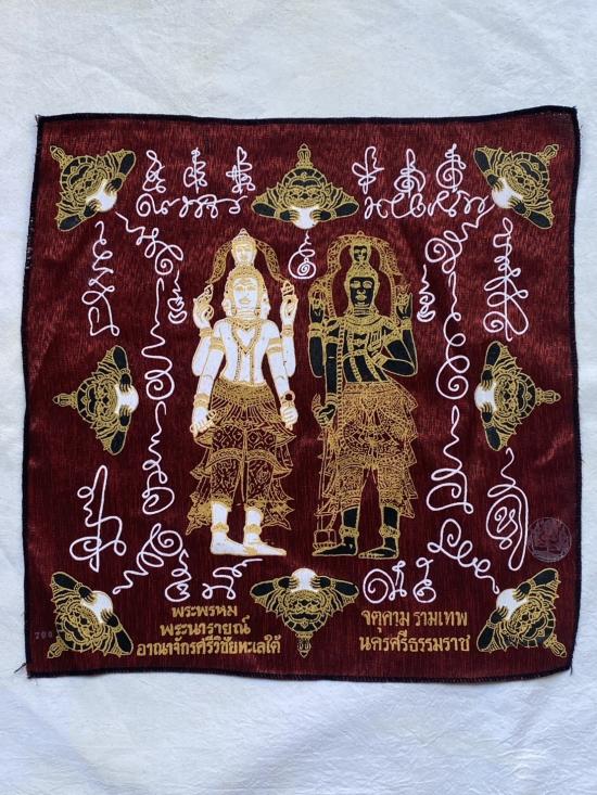 เคาะเดียวแดง ผ้ายันต์ พระพรหม พระนารายณ์ มิ่งมงคล รุ่นมงคลจักวาล