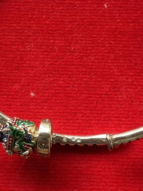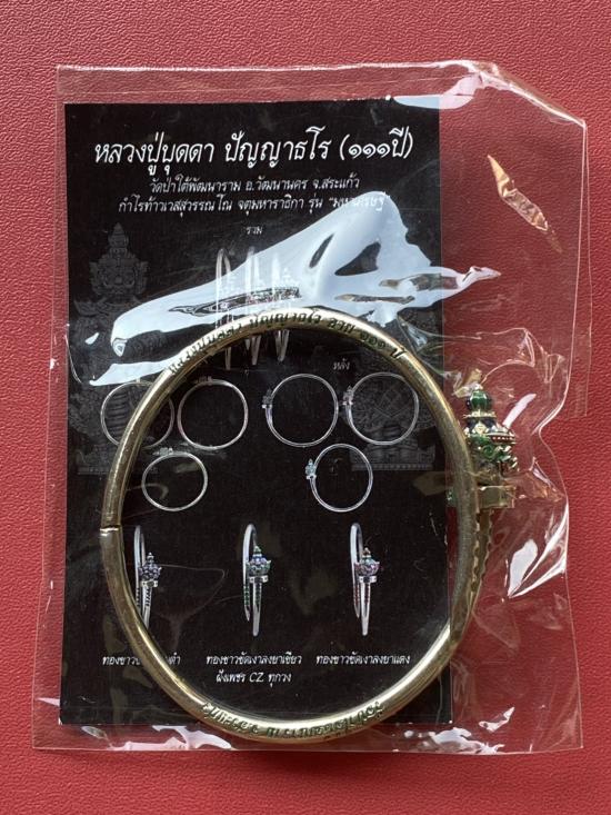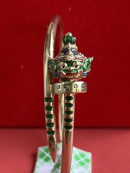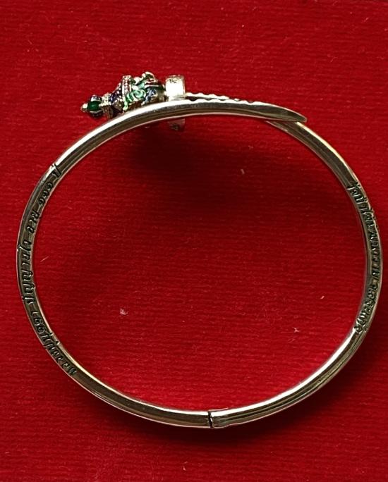 เคาะเดียวแดง หลวงปู่บุดดา กำไลท้าวเวส เนื้อ ทองขาวขัดเงา ลงยาสีเขียว |