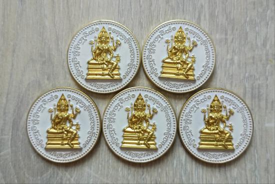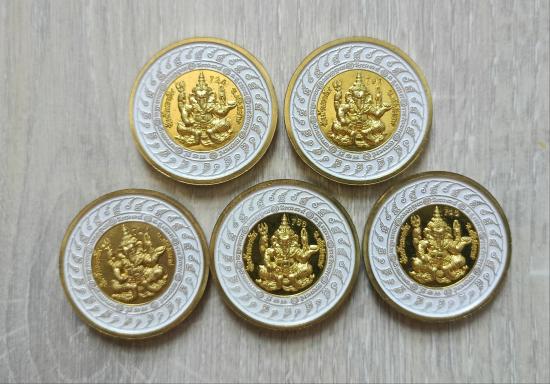 วัดใจเคาะเดียวแดงจ้า เหรียญพระพรหมหลังพระพิฆเนศ เนื้อกะไหล่ทองลงยาขาว หลวงปู่เถิง จำนวน5เหรียญ เคาะเดียวแดงจ้า |