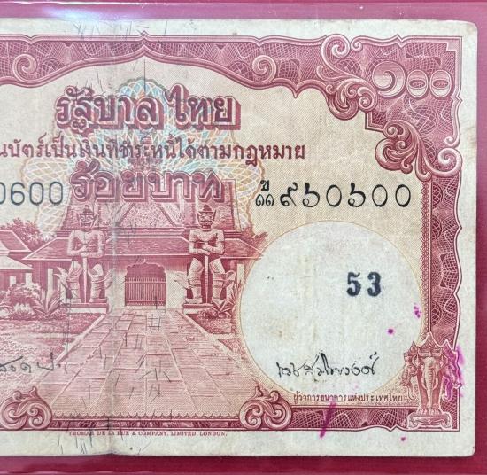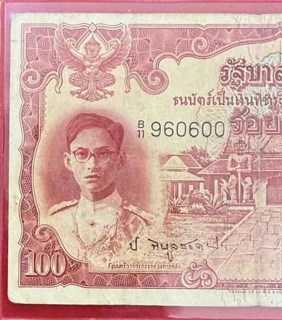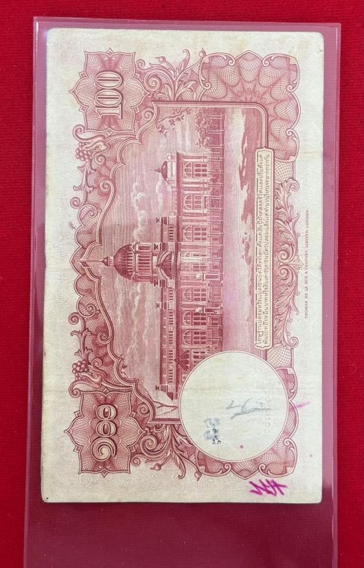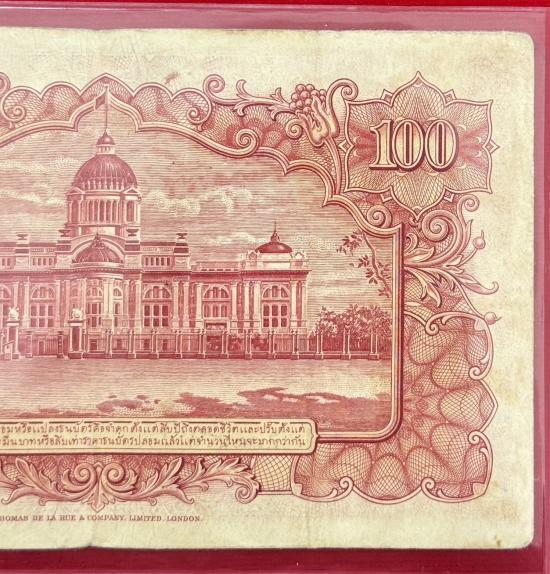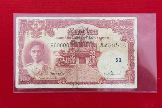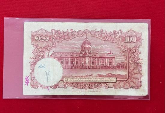 ธนบัตร 100 บาท แบบ 9 หน้าหนุ่ม ลายน้ำพานรัฐธรรมนูญ...ลายเซ็น จอมพล ป พิบูลสงคราม- เดช. สนิทวงศ์ หายาก สภาพสวยตามรูป
