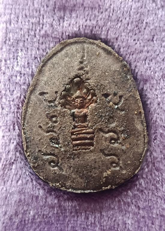 เนื้อผงผสมแร่ ด้านหน้าฝังพลอย - หลังฝังพระนาคปรก กล่องเดิม |