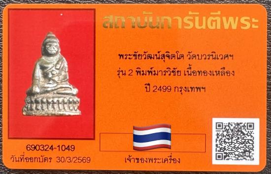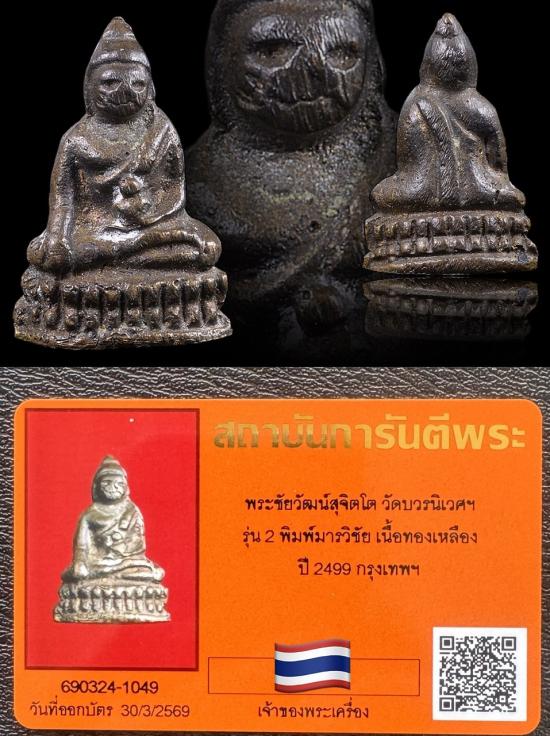 พระชัยวัฒน์สุจิตโต วัดบวรนิเวศฯ รุ่น 2 พิมพ์มารวิชัย เนื้อทองเหลือง ปี2499 พระเดิมน่าเก็บมากครับ พร้อมบัตร รับประกันแท้และตามกฎครับ