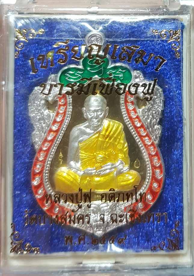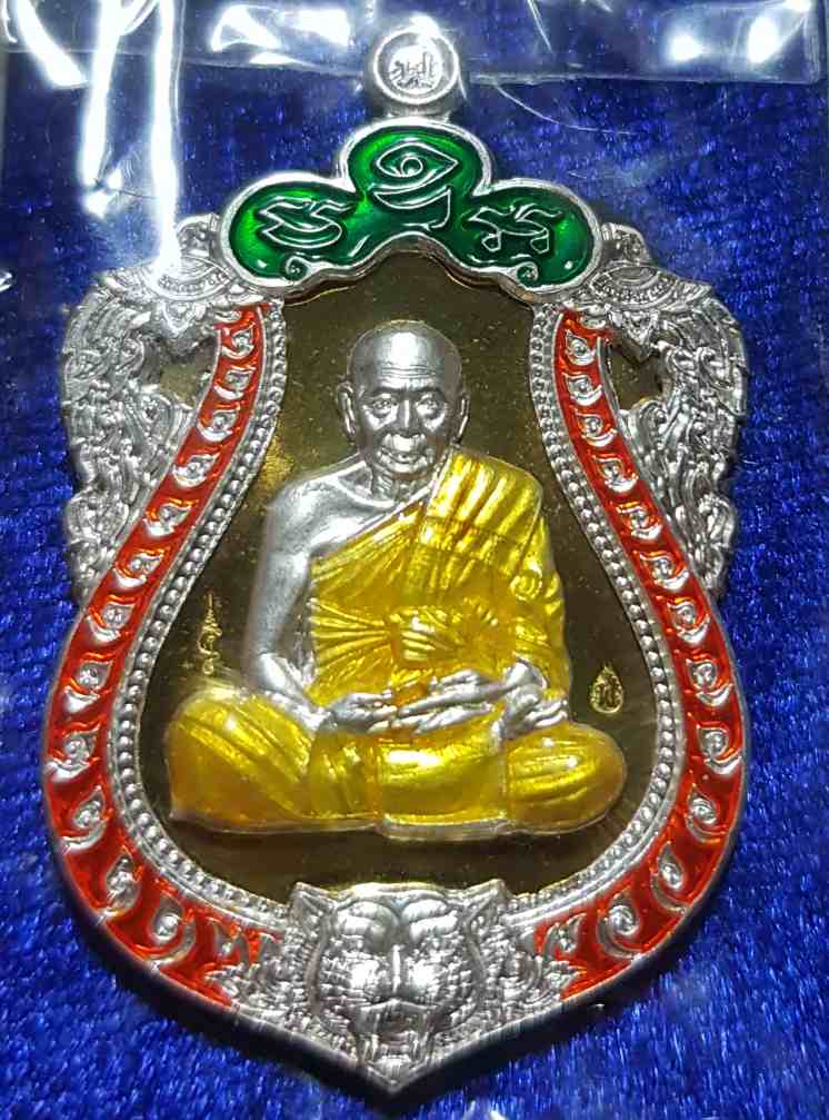 "วัดใจ" เหรียญเสมาหัวเสือปะฉลุ หลวงปู่ฟู วัดบางสมัคร รุ่นบารมีเฟื่องฟู พ.ศ.2559 เนื้อทองระฆัง หน้าอัลปาก้า ลงยาสามสี (กรรมการ) สภาพสวยซีลเดิม พร้อมกล่องเดิม หมายเลข 28