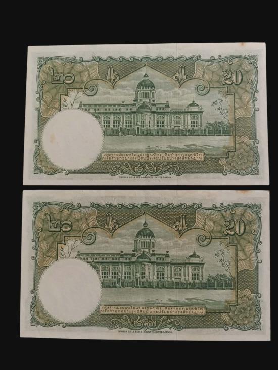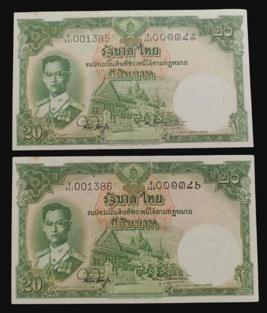 หายากครับ เลขเรียงกัน พร้อมกัน 2 ฉบับครับ ธนบัตร 20 บาท แบบ9 สมหมาย - พิสุทธิ์ มีสนิมที่ขอบนิดเดียว สภาพตามรูปทุกประการ