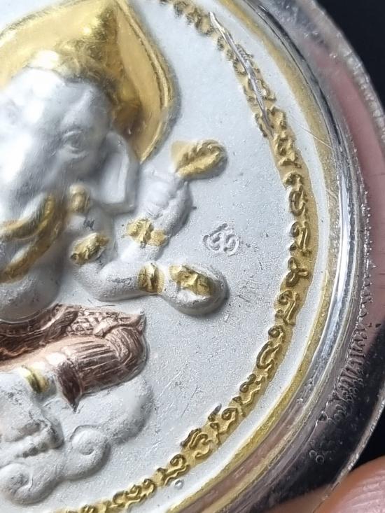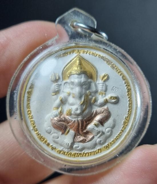 เหรียญพระพิฆเนศ หลัง บรมครูปู่ฤาษี (พ่อแก่) รุ่น สำเร็จสมปรารถนา เนื้อสามกษัตริย์ (3K) วัดไผ่ล้อม อ.เมือง จ.นครปฐม ปี 2551 เลี่ยมพร้อมใช้ พิมพ์ใหญ่ขนาด3ซม.