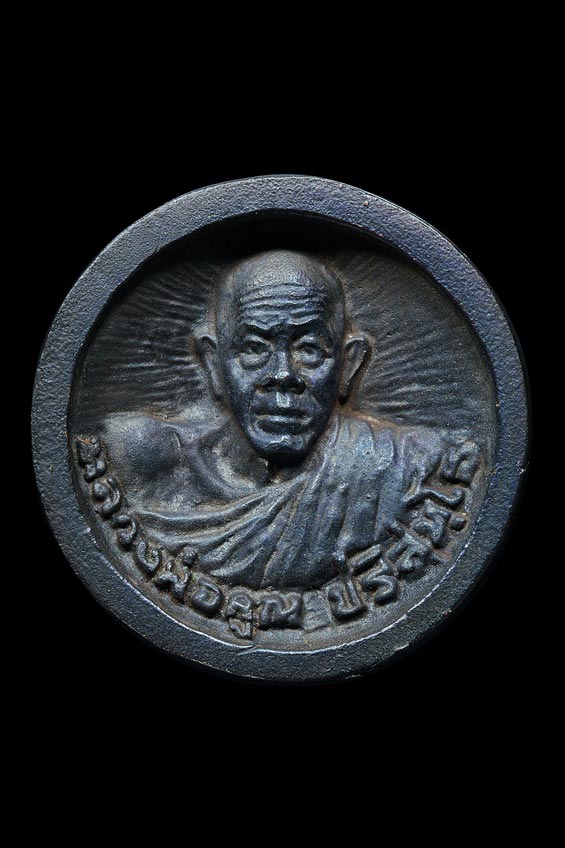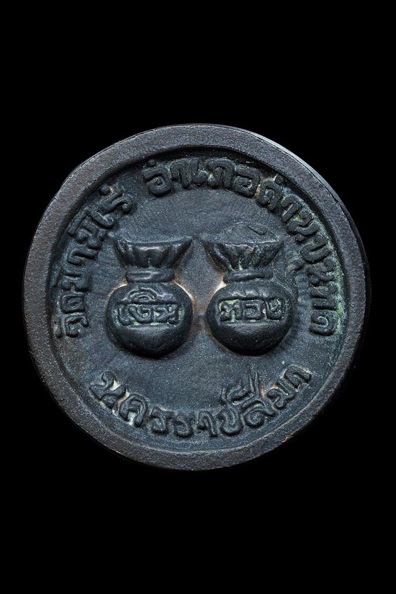 เหรียญหล่อล้อแม็ก ถุงเงิน-ถุงทอง ( พิมพ์ใหญ่ -ไม่มีหูเหรียญ ) รุ่น อายุครบ 70 ปี ( เนื้อทองแดงรมดำ ) พ.ศ.2535 ( กล่องเดิม ) ** 1 **