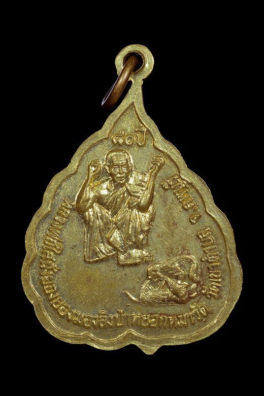 เหรียญใบโพธิ์ หลวงพ่อคูณ วัดบ้านไร่ นั่งยองยองลองเลิกสูบยาม้วนใหญ่ หลวงพ่อใส ( อายุ 80 ปี ) นั่งยองยองมองลิงป่าหยอกหมาวัด วัดเขาตำบล ( เนื้อทองฝาบาตร ) พ.ศ.2539 ** 1 **
