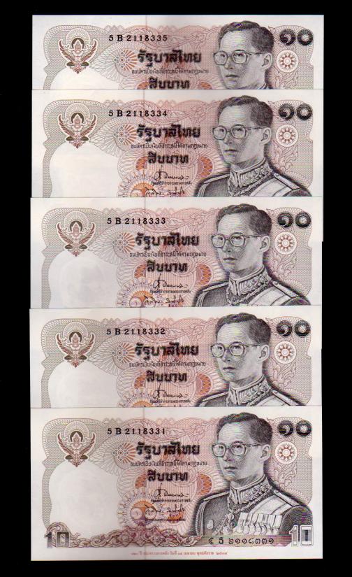 ## ธนบัตร 10 บาท ## ทรงม้า ## 120ปี กระทรวง ## เรียงเลข 5 ฉบับ ## แกะแหนบ ## UNC ##