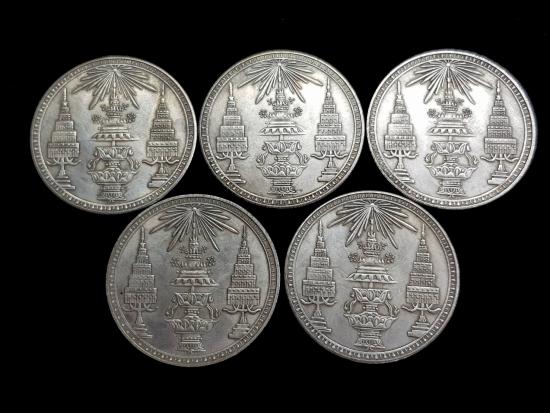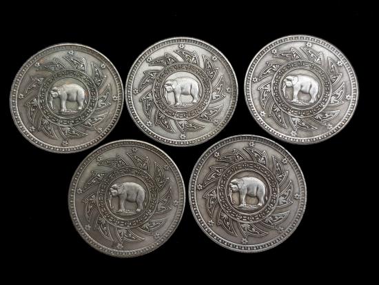 เคาะเดียว (5 เหรียญ)เหรียญ พุ่มฉัตร หลัง ช้างในพระแสงจักร ขอบสตางค์ สวยๆครับ #2