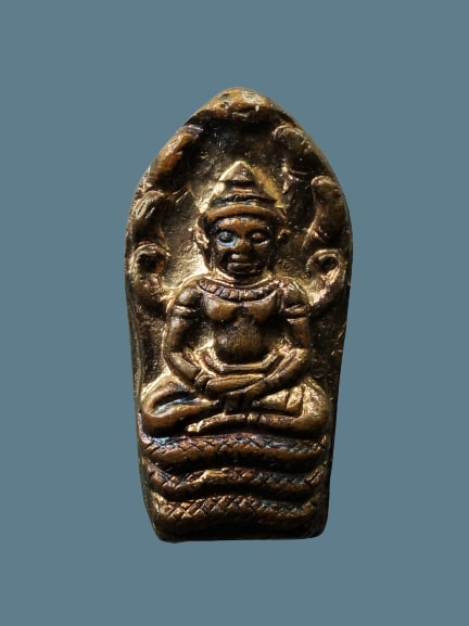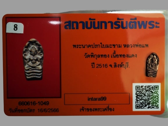 พระนาคปรกใบมะขาม หลวงพ่อแพ รุ่นแรก พ.ศ. 2516 เนื้อทองแดง วัดพิกุลทอง จ.สิงห์บุรี ตอกโค๊ด พร้อมบัตร G=Pra |