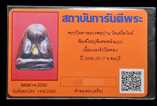 พระปิดตา หลวงพ่อปาน วัดเครือวัลย์ ชลบุรี พร้อมบัตรรับรอง