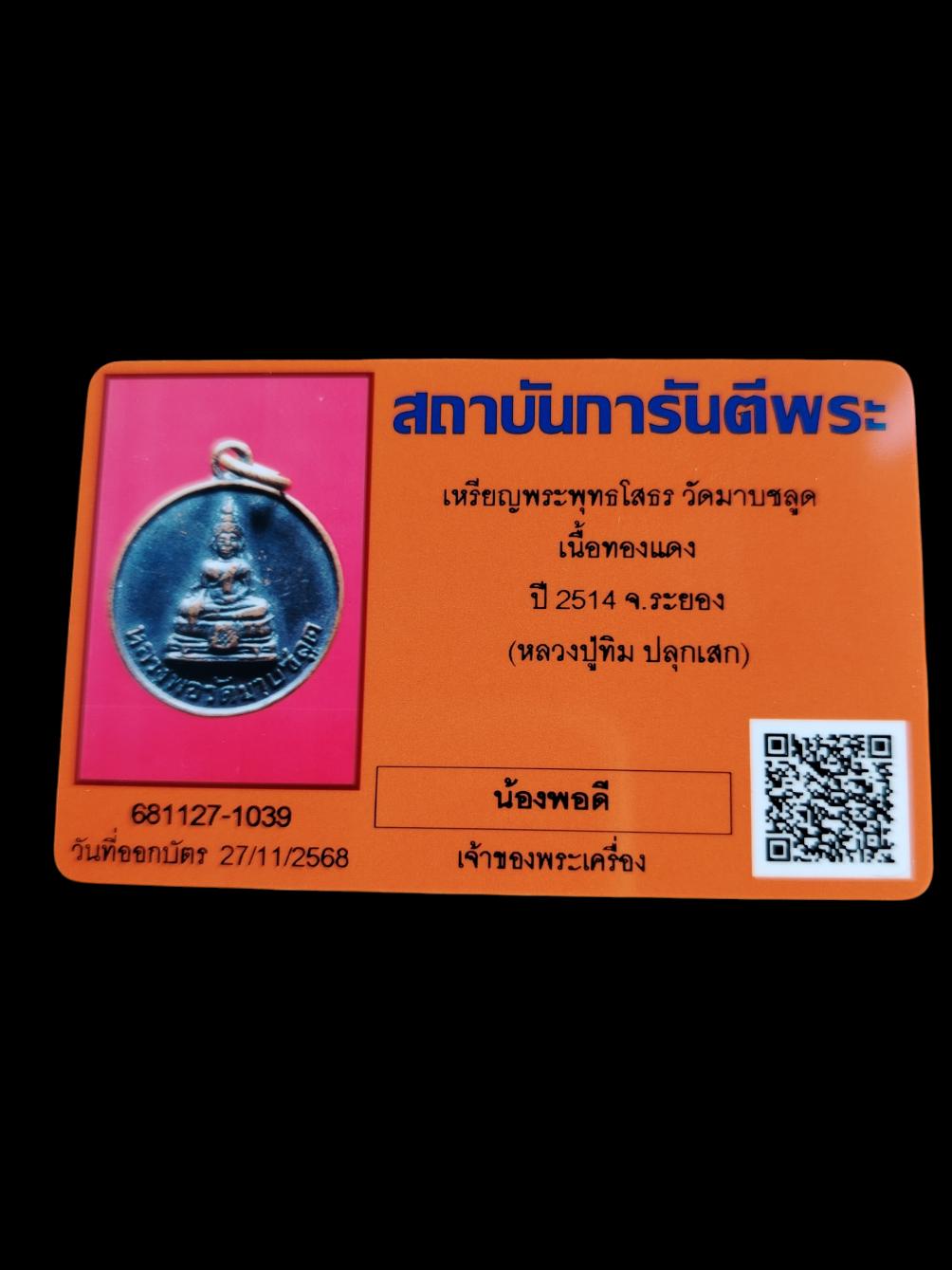 เหรียญพระพุทธโสธรวัดมาบชลูด ปี 14 หลวงปู่ทิมปลุกเสก มาพร้อมบัตรรับรอง