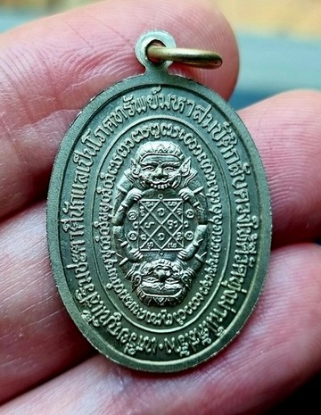 มีคำว่า "รุ่นแรก" ด้านหลังเป็นยันต์ราหู ครูสุริยประภา และยันต์ราหู ครูจันทรประภา ล้อมรอบด้วยอักขระล้านนา ตามตำรากำกับ ให้ท่านเป็นผู้เจริญทั้งกลางวันและกลางคืน เสริมชะตาชีวิตให้ดีขึ้น ดวงที่ร้ายทำให้ดี ดวงที่ดีจะยกให้ดีขึ้นไปอีก อีกทั้งเป็นผู้เจริญในหน้าที่การงาน อาชีพ เงินทอง โชคลาภ มากมี มีโภคทรัพย์มาก เป็นมหาสมบัติ เงินทองไม่ขาดไม่พร่อง เสริมต่อให้ไม่มีวันหมด เหรียญนี้ครูบาเลิศสร้างเป็นรุ่นแรกท่านปลุกเสกนานข้ามวันข้ามคืน