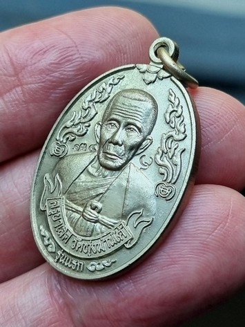 เหรียญรุ่นแรก เนื้ออัลปาก้า ครูบาเลิศ วัดทุ่งม่านใต้ จ.ลำปาง ซองเดิม