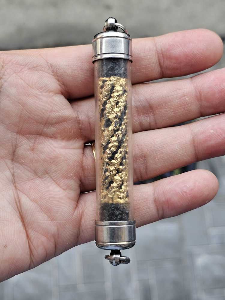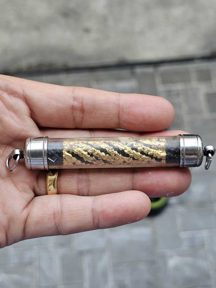 วัดใจ !!! ตะกรุดดำ หลวงพ่อจำลอง วัดเจดีย์แดง อยุธยา ยาว 8 เซน |