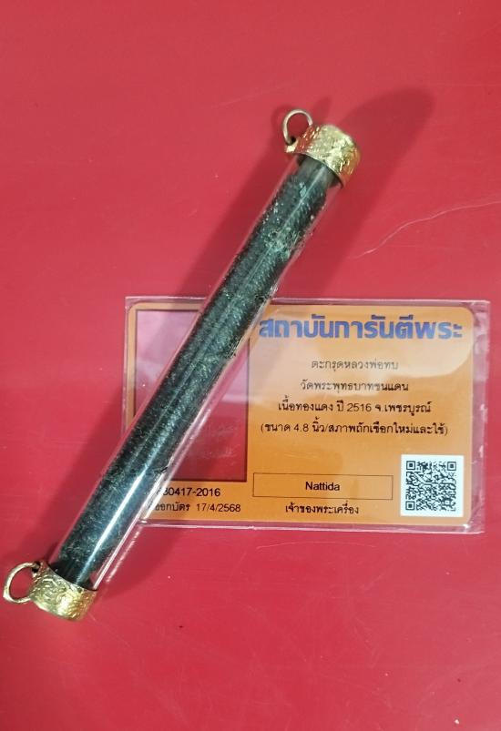 ตะกรุดหลวงพ่อทบ วัดพระพุทธบาทชนแดนเนื้อทองแดง ปี 2516 จ.เพชรบูรณ์ (ขนาด 4.8 นิ้ว/สภาพถักเชือกใหม่และใช้)