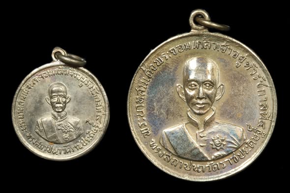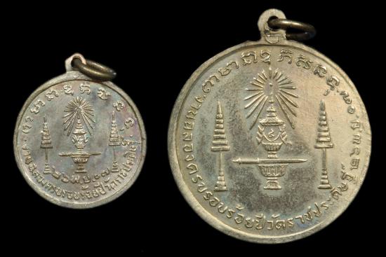 เหรียญสมเด็จพระจอมเกล้าเจ้าอยู่หัว ร.4 ฉลองครบรอบร้อยปีวัดราชประดิษฐ์ ปี 2507 พิมพ์ใหญ่+พิมพ์เล็ก รวม 2 เหรียญ เนื้ออัลปาก้า สวยจิ๊ดๆ ทั้ง 2 เหรียญ