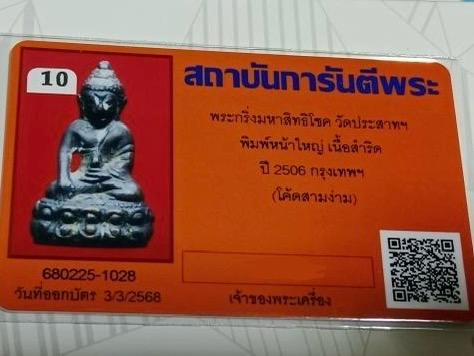 พระกริ่งมหาสิทธิโชค วัดประสาทปี 06 หน้าใหญ่โค้ดสามง่ามพร้อมบัตรจีพระ