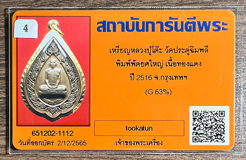 เหรียญพัดยศใหญ่ ปี16 เนื้อทองแดง สภาพสวย หน้าตาติดชัด จมูกโด่ง ผิวไฟแดงๆ พร้อมเลี่ยมทองงามๆ (มีบัตรรับรองพระแท้)