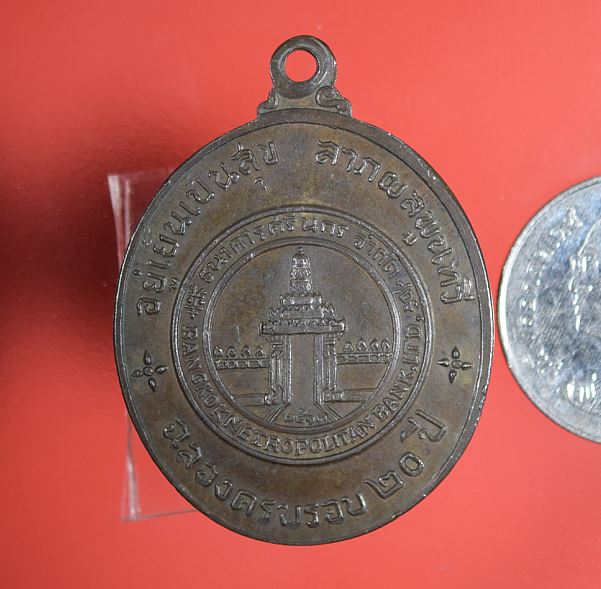 เหรียญอยู่เย็นเป็นสุข ลาภผลพูนทวี พิมพ์ประทานพร ธนาคารศรีนครจำกัด ปี 2513 ฉลองครบรอบ 20ปี เนื้อนวโลหะ เคาะเดียวแดง