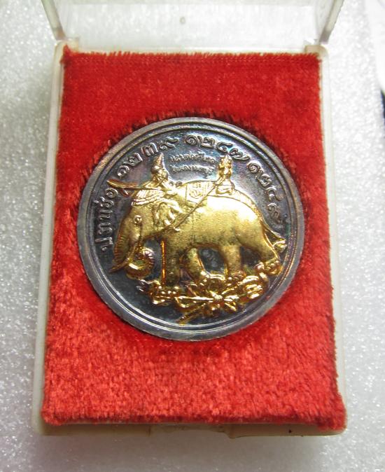 เหรียญปราบฮ่อ ร.5 ย้อนยุค กะไหล่เงิน วัดเพลง จ.นนบุรี กล่องเดิม ปี2536 เคาะเดียว 100