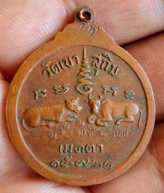 เหรียญหลวงพ่อสมชาย วัดเขาสุกิม รุ่นเมตตา เสือ...วัว ปี2521 เนื้อทองแดง