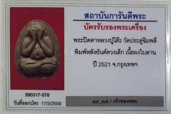 ## บัตรรับรองพระแท้ ออกโดย สถาบันการันตีพระ no. 590317-078