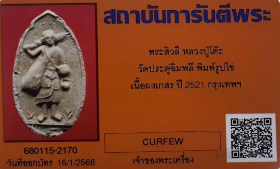 ## บัตรรับรองพระแท้ ออกโดย สถาบันการันตีพระ no. 680115-2170
