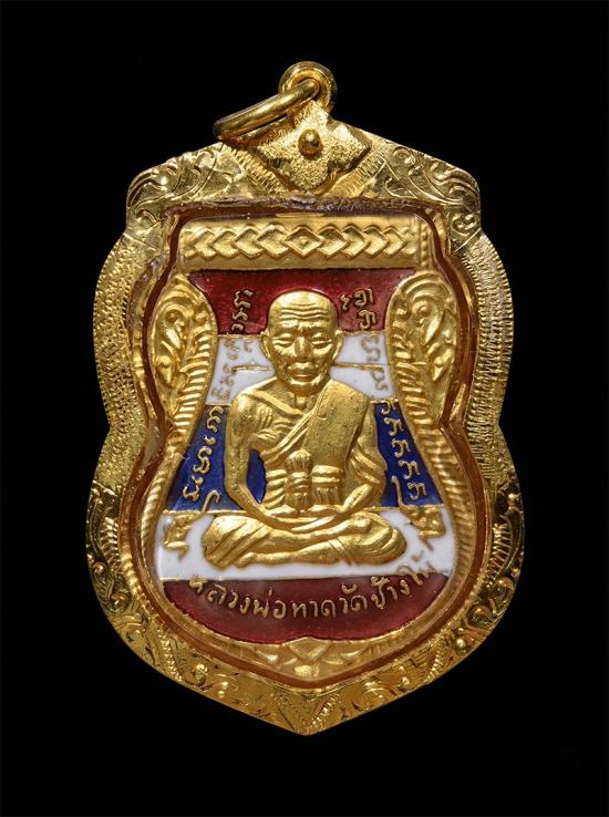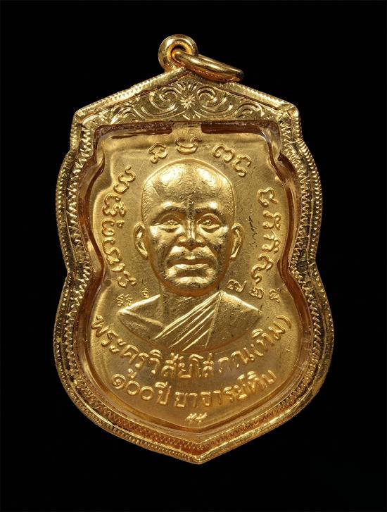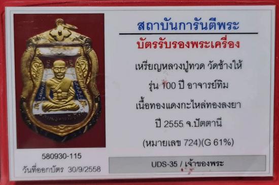 เหรียญหลวงปู่ทวด วัดช้างให้รุ่น 100 ปี อ.ทิม เนื้อทองแดงกะไหล่ทองลงยา ปี 2555 ปัตตานี หมายเลข 724 เลี่ยมทองพร้อมบัตร