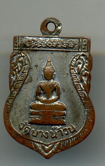 เหรียญเสมาเล็ก หลวงปู่รอด วัดบางน้ำวน หลังหลวงพ่อโสธร ปี23 เนื้อทองแดงกะไหล่เงิน
