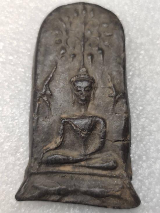 พระยอดขุนพลพะเยา พิมพ์ปรกโพธิ์ เนื้อดิน ปางมารวิชัย |