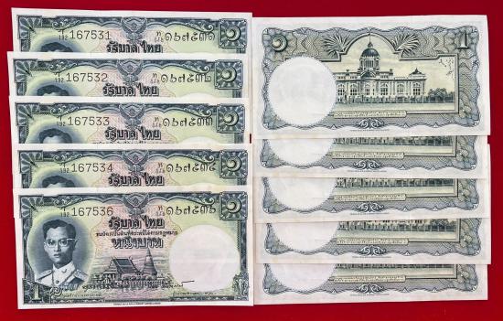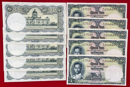 ธนบัตร 1 บาท โทมัส รัชกาลที่ 9 หน้าหนุ่ม จำนวน 10 ใบ สภาพสวยตามรูป