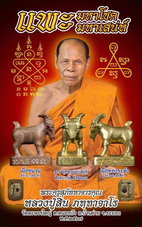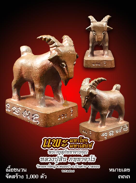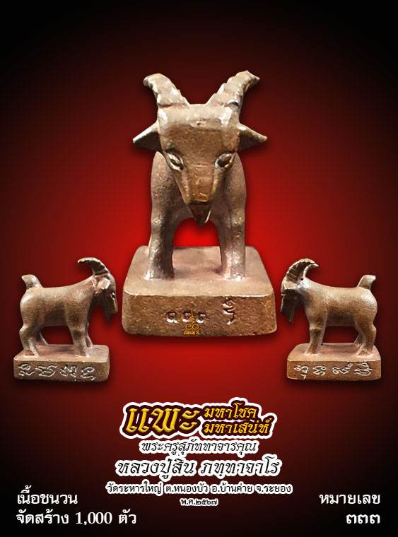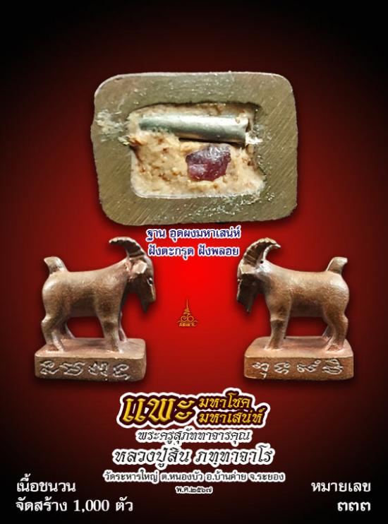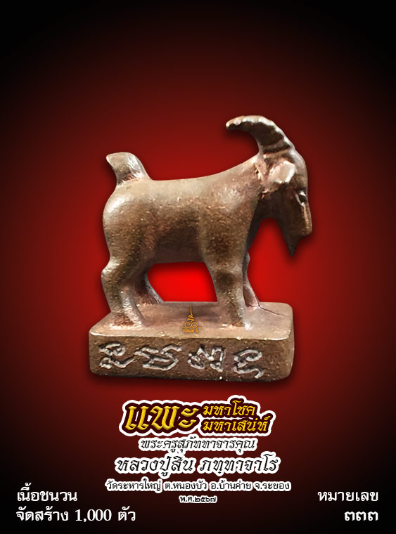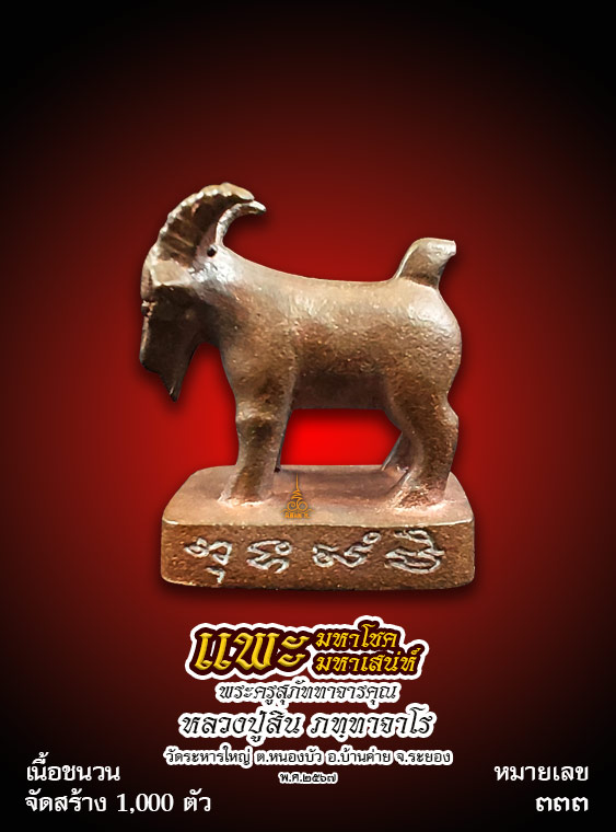 เลขตองสวยๆ แพะ มหาโชค มหาเสน่ห์ หลวงปู่สิน เนื้อชนวน หมายเลข ๓๓๓ ปี พ.ศ.๒๕๖๗ |