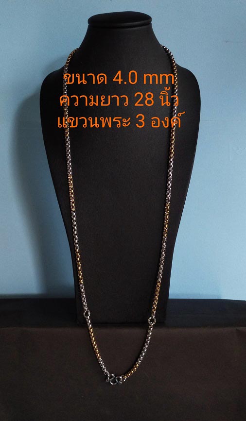 สร้อยลายผ่าหวาย 2 K หรือสองกษัตริย์ เเขวนพระ 3 องศ์ ขนาด 4.0 mm ยาว 28 นิ้ว